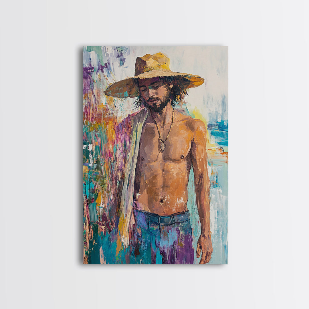 Beach Wanderer, Boho Art, Cottagecore Wall Art, Moody Art, Coastal Decor, Ocean Painting, Framed Canvas Print, Rustic Wall Art