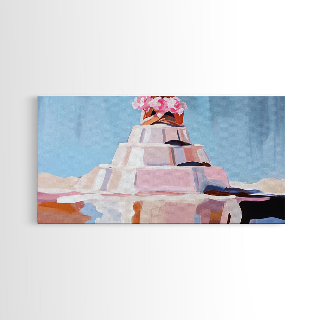 Beach Wedding, Romantic, Modern, Framed Canvas Print, Coastal Wall Art, Minimalist Painting, Bedroom Decor, Pastel Colors, Gift Idea