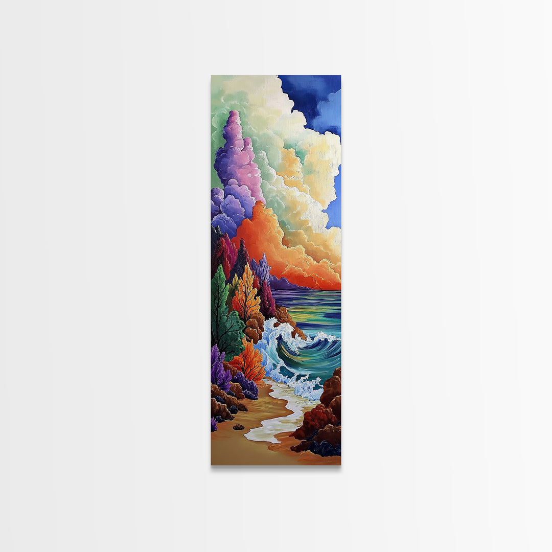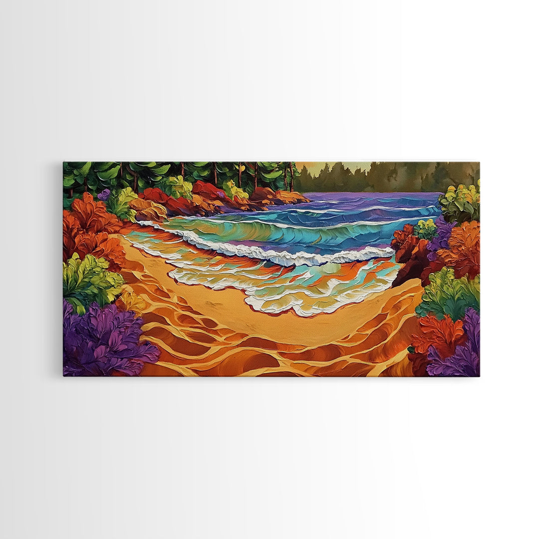 Beach Waves, Autumn, Forest, Canvas Print colorful seashore painting, fall beach wall art, textured nature decor, cabin or lodge decor