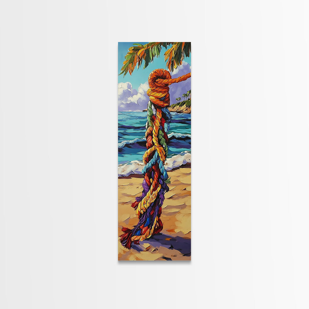Beach, Rope, Colorful, Tropical, Framed Canvas Print, Nautical Wall Art, Coastal Boho Decor, Beach House Accent, Bright Living Room Art