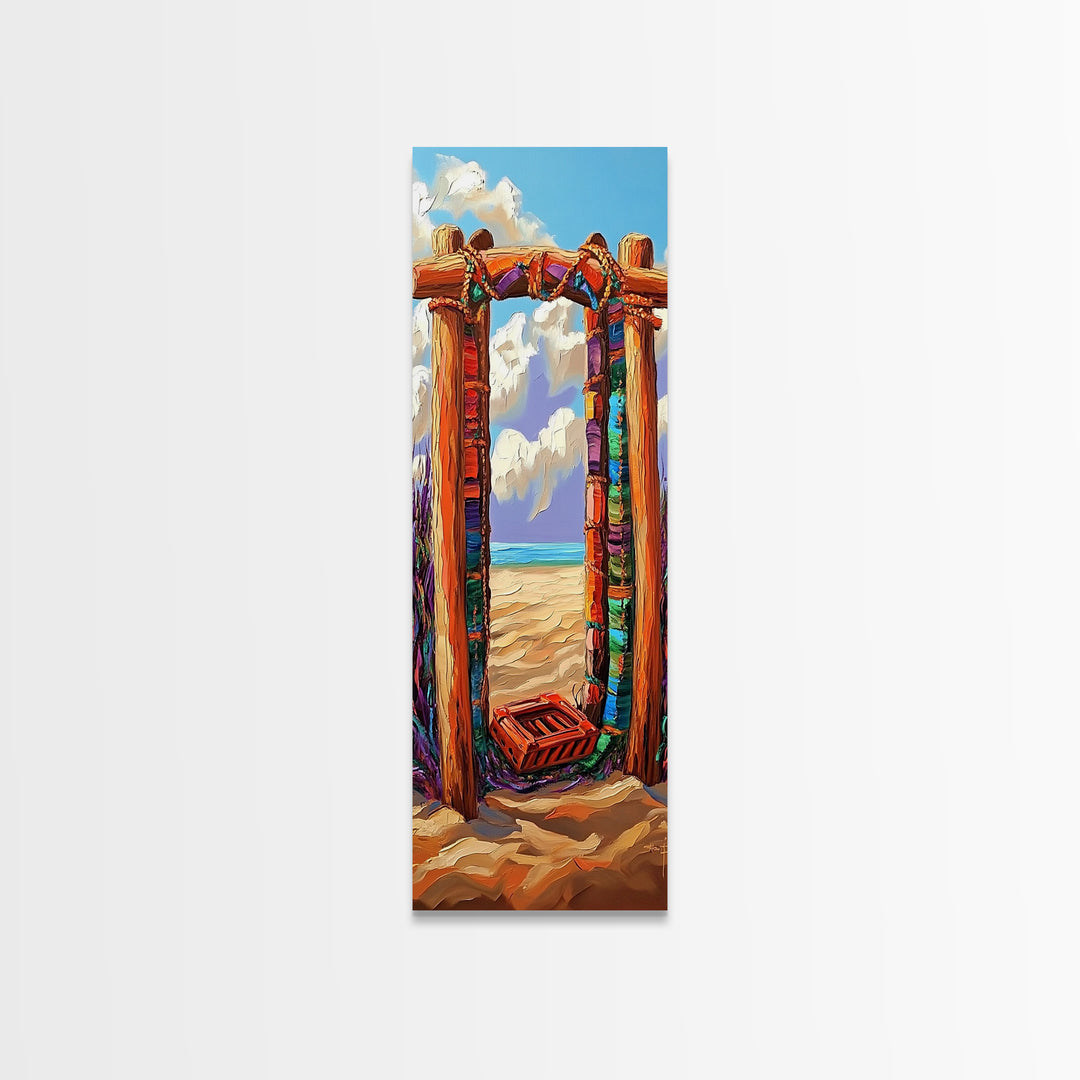 Beach, Frame, Coastal, Tropical, Framed Canvas Print colorful seaside gate artwork boho beach house wall decor summer entryway art