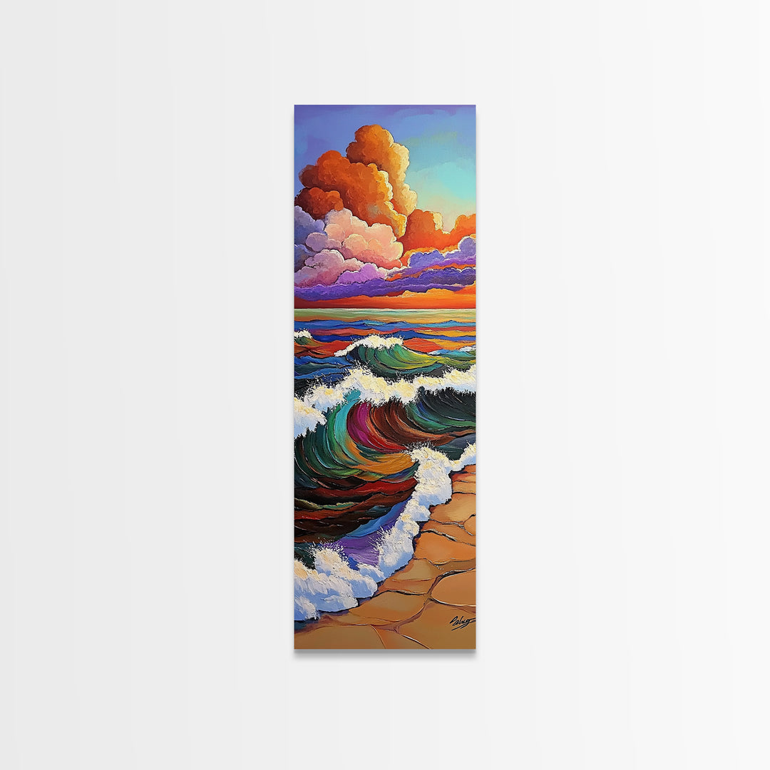Beach Waves, Sunset, Surf - Canvas Print ocean wall art, colorful beach waves painting, vibrant seascape, bathroom or living room boho decor