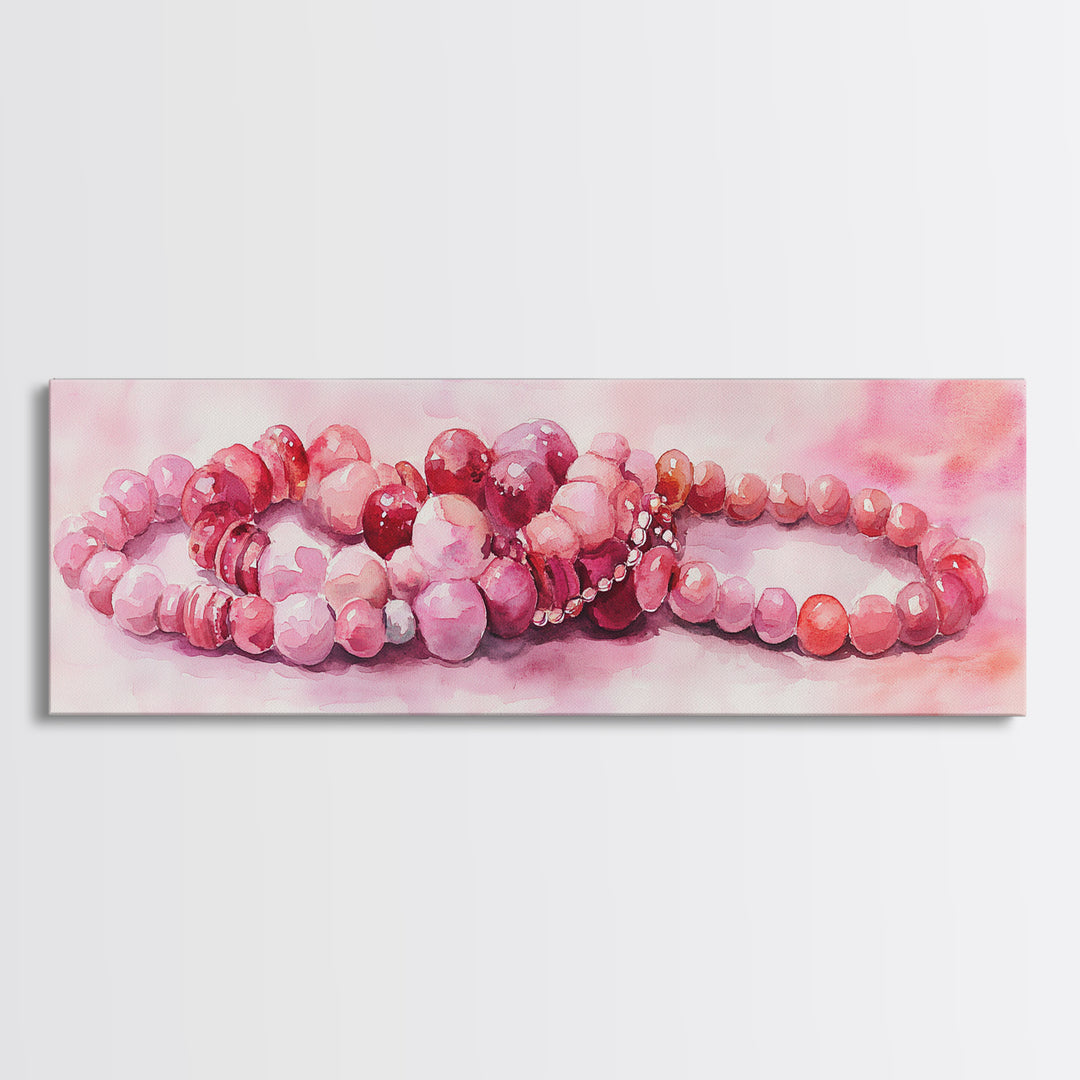Beaded Bracelet Canvas Print Whimsical Jewelry Art Boho Wall Art Light Pink Gemstone Painting Feminine Cottagecore Decor