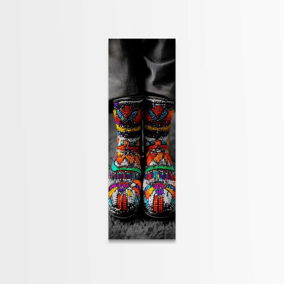 Beaded Boots, Bold Fashion, Cultural Style, Tribal Vibes, Framed Canvas Print, Boho art, Fashion Wall Art, Entryway Decor, Statement Piece