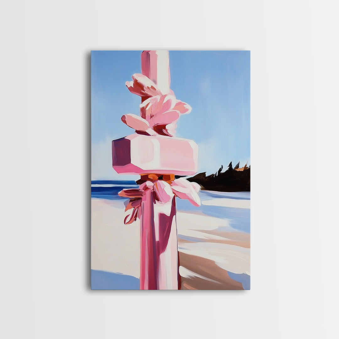 Abstract Coastal Pillar, Ocean Inspired Art, Minimalist Blue Aesthetic, Beach House Decor, Canvas Print, Framed Canvas Print