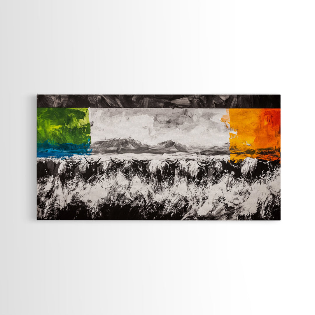 Abstract Cattle, Western Art, Colorful Farm Scene, Framed Canvas Print, Modern Ranch Wall Decor, Farmhouse Style, Rustic Artwork