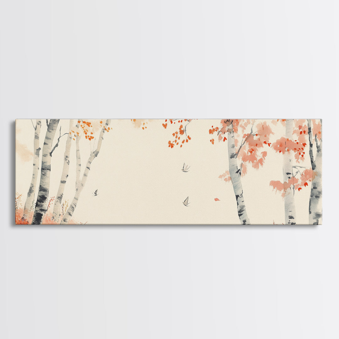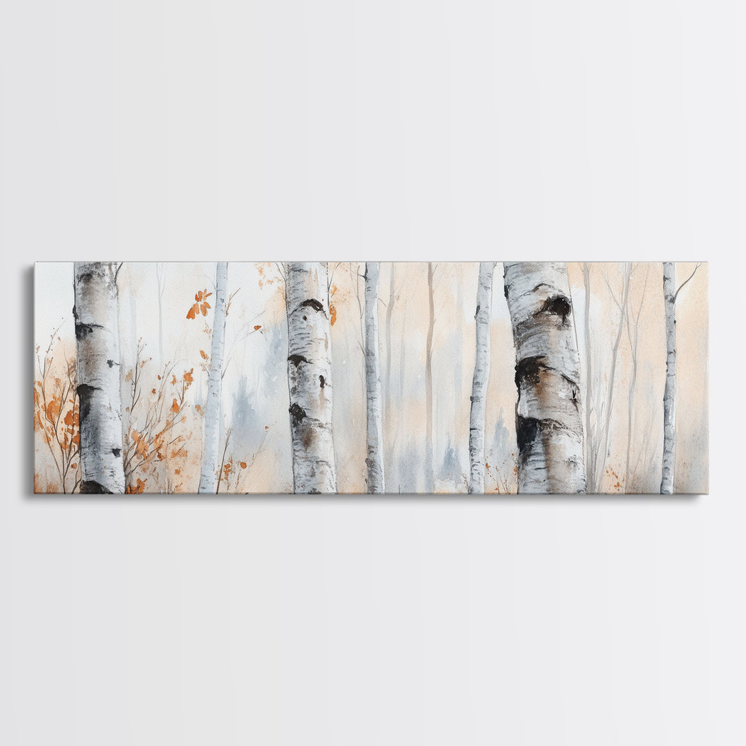 Birch Trees Watercolor Canvas Print, Rustic Woodland Autumn Art, Farmhouse Above Sofa Decor, Nature Inspired Wall Artwork, Minimalist Style