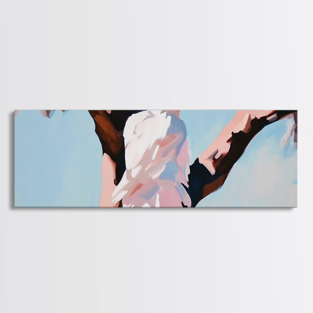 Bird Wing Painting, Abstract Nature Art, Soft Pastel Wall Art, Minimalist Feather Print, Elegant Aesthetic, Framed Canvas Print