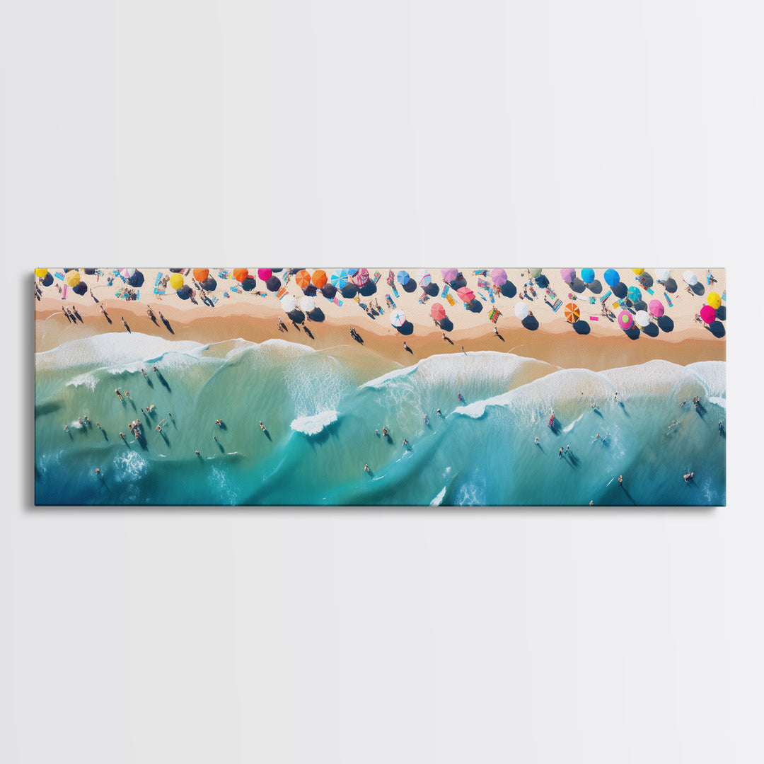 Bird's Eye View Of The Beach, Framed Canvas Print, Nautical Seascapes Decor, Panoramic Extra Wide Wall Art