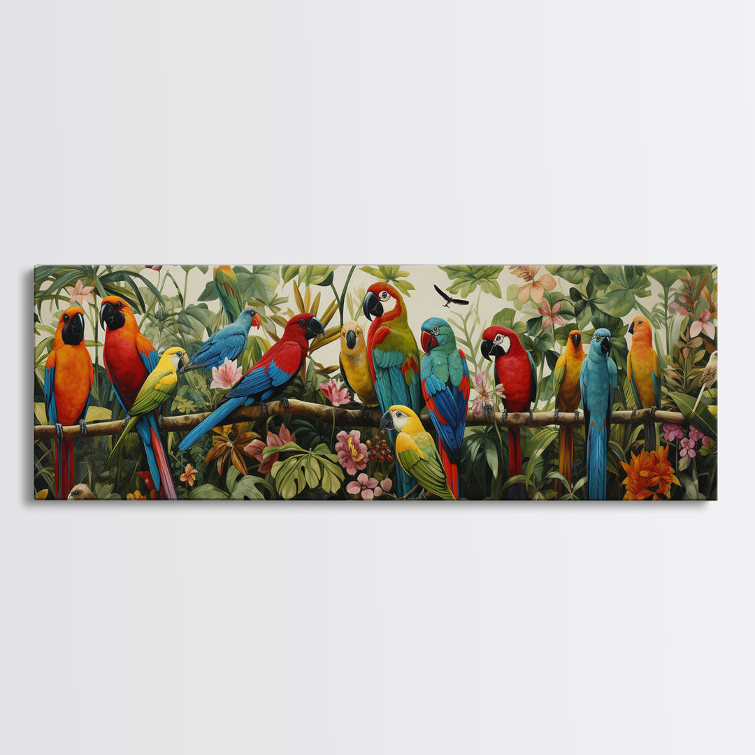 Birds Of Paradise, Parrot Print, Tropical Art, Framed Canvas Print, Beautiful Above Sofa Wall Art, Guest Room Decor