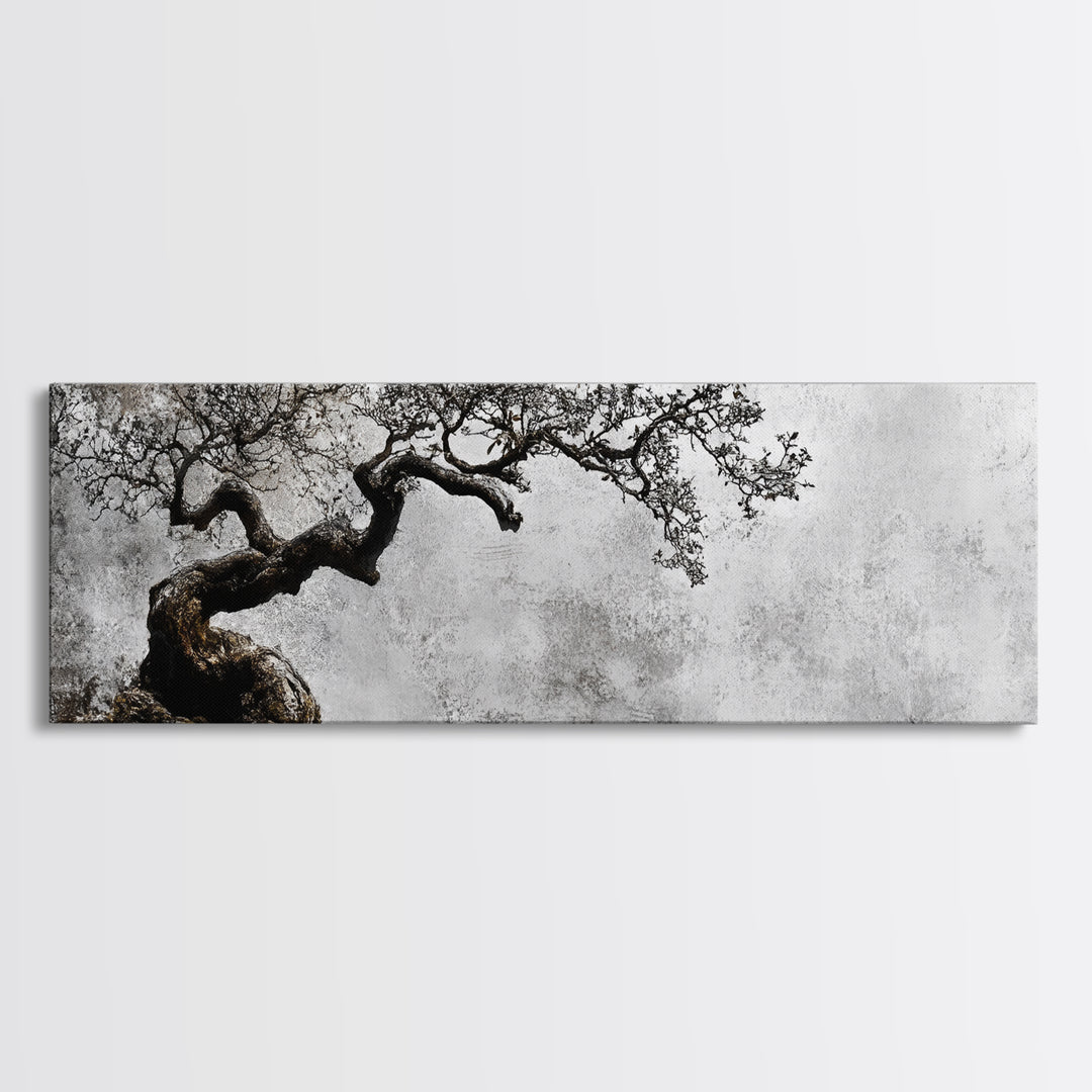 Black and White Charcoal Sketch Print of a Bonzai Tree, Framed Canvas Print, Wabi Sabi Art, Wabi Sabi Painting, Minimalist Home Decor
