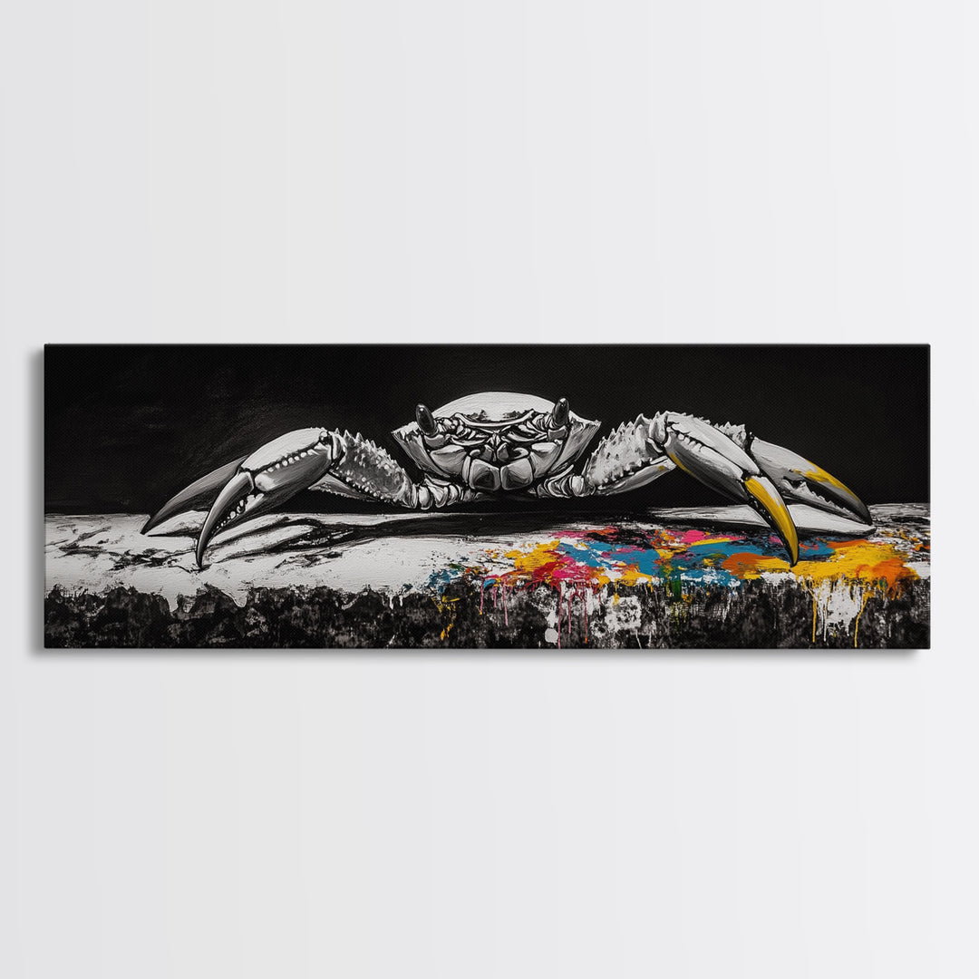 Black and White Crab, Minimalist Marine Art, Bold Nautical Decor, Coastal Kitchen Wall Art, Ocean Inspired Print, Framed Canvas Print
