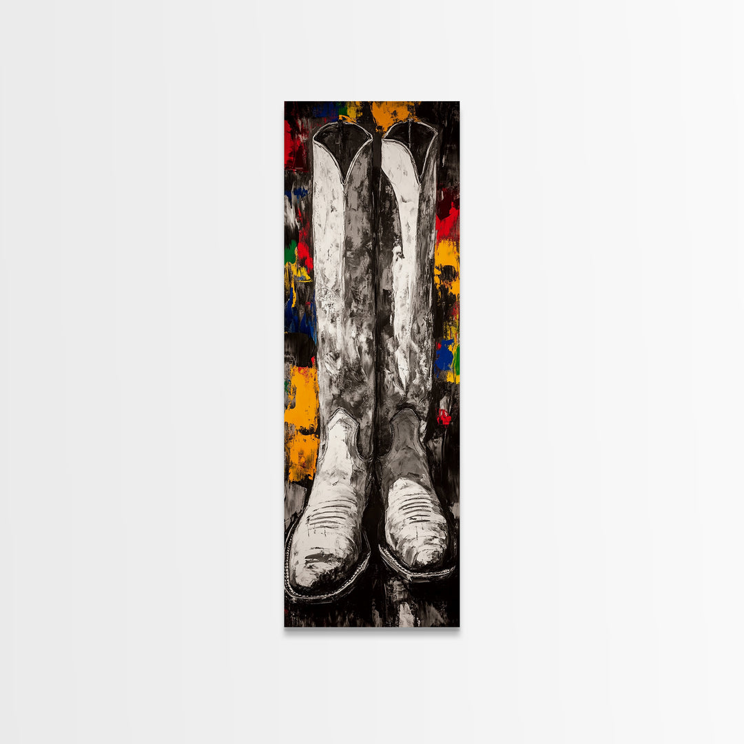 Black and White Cowboy Boots Framed Canvas Print, Rustic Wall Art, Western Art, Moody Art, Vintage Horse Art, Extra Wide Art