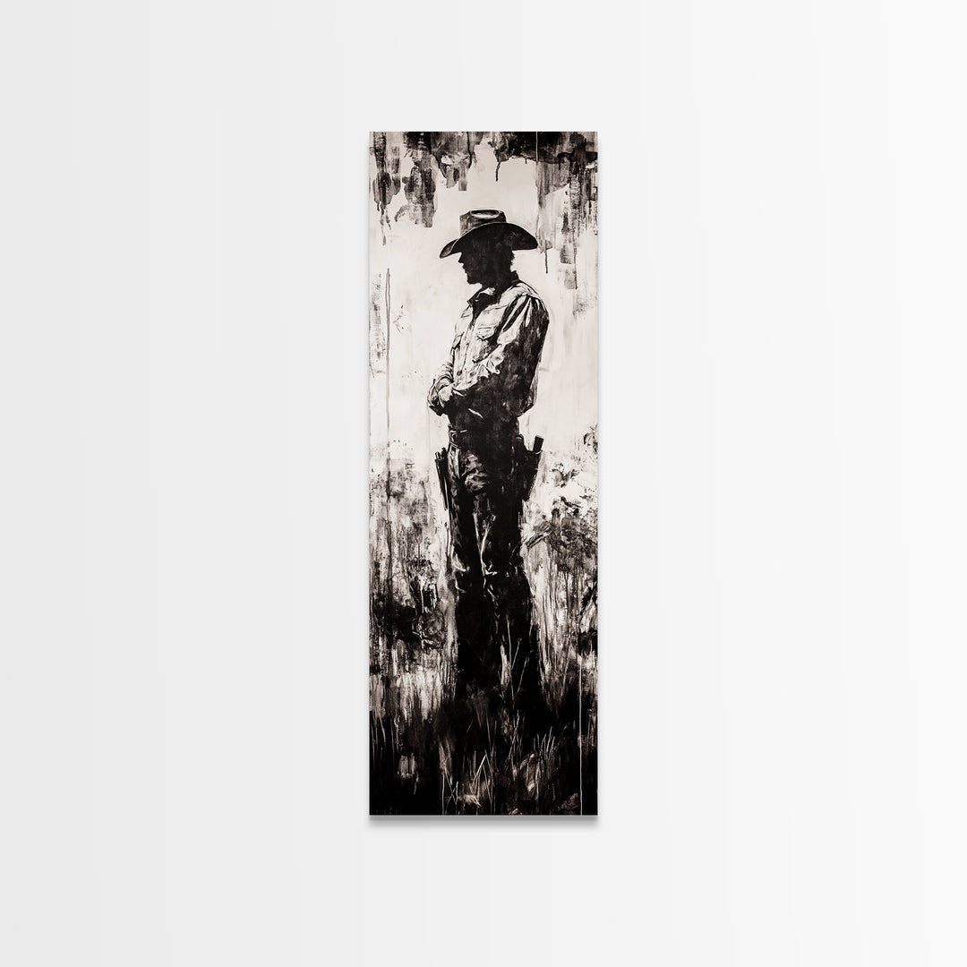 Black and White Cowboy Art Framed Canvas Print, Rustic Wall Art, Moody Art, Southwest Wall Art, Vintage Horse Art, Tall Narrow Art