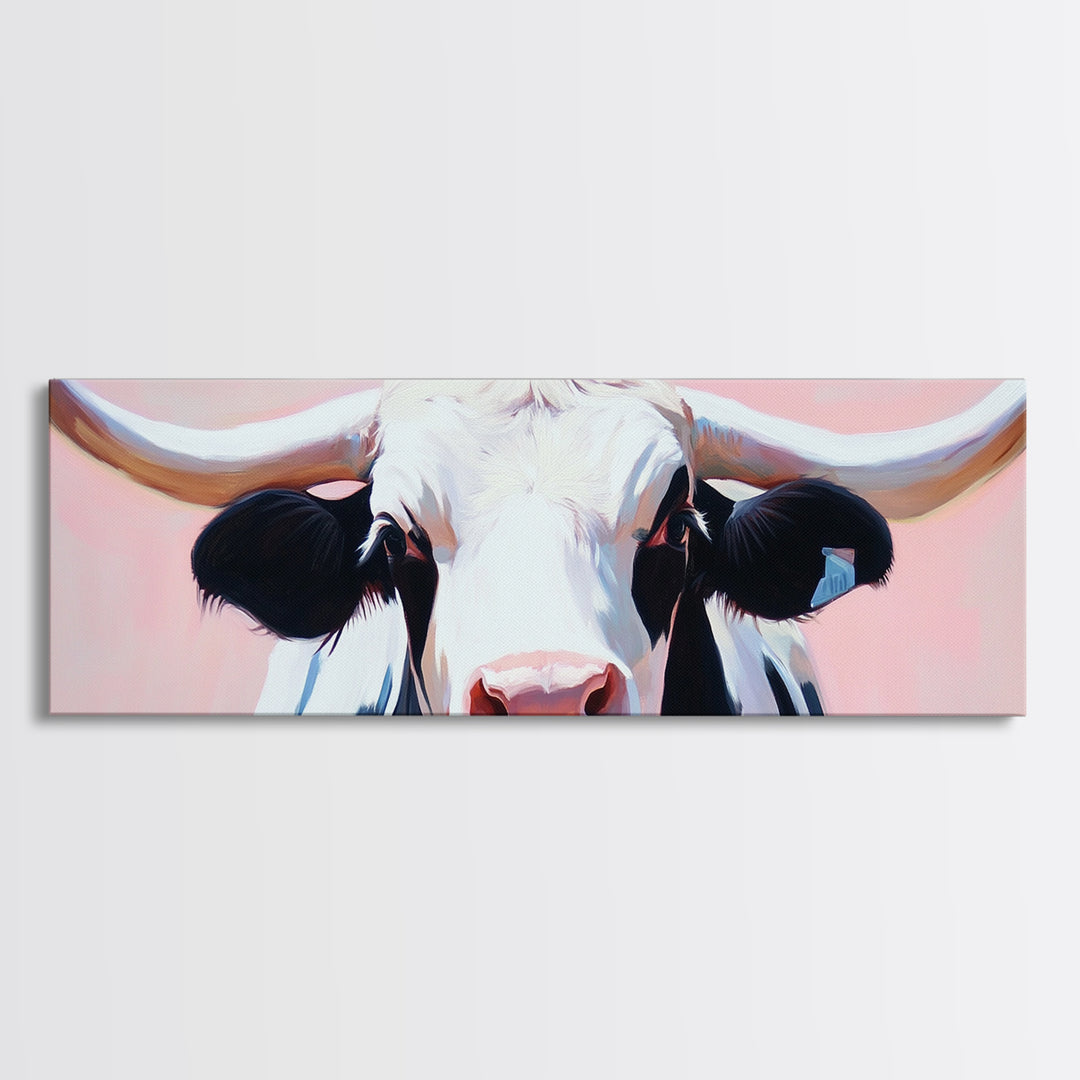 Black and White Cow Art, Light Pink Wall Art, Southwest Wall Art, Coastal Cowgirl Wall Art, Framed Canvas Print, Rustic Decor