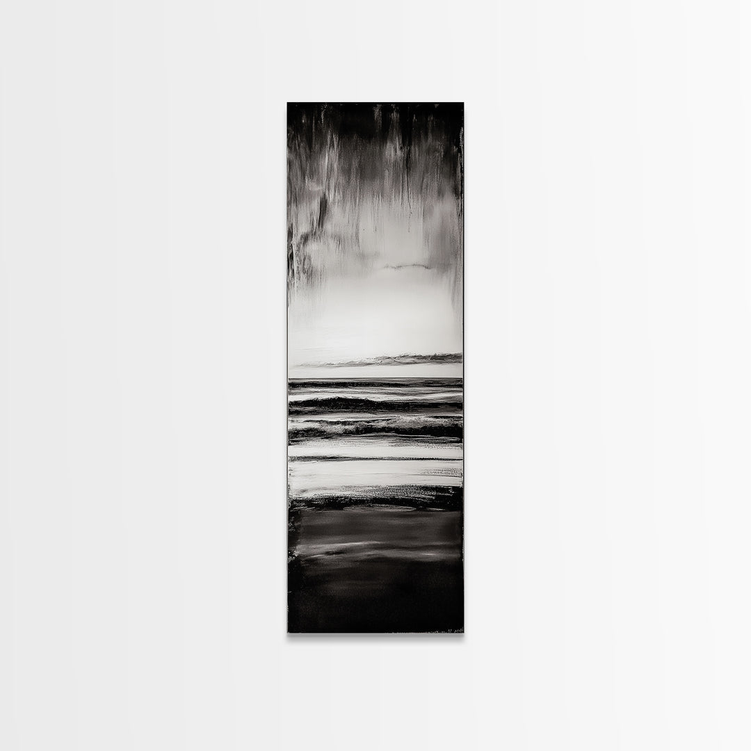 Black and White Seascape, Ocean Wave Painting, Minimalist Coastal Wall Decor, Beach House Artwork, Living Room Art, Framed Canvas Print