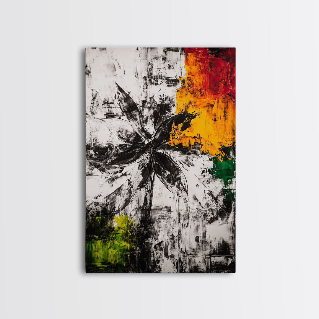 Black and White Flower, Abstract Floral Art, Bold Modern Decor, Minimalist Botanical Framed Canvas Print, Contemporary Bedroom Wall Art