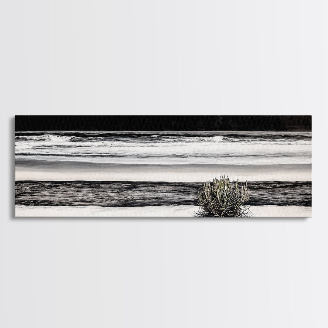Black and White Ocean Photography Style Print, Panoramic Wall Art, Wood Framed Canvas Art, Seascapes, Nautical Decor