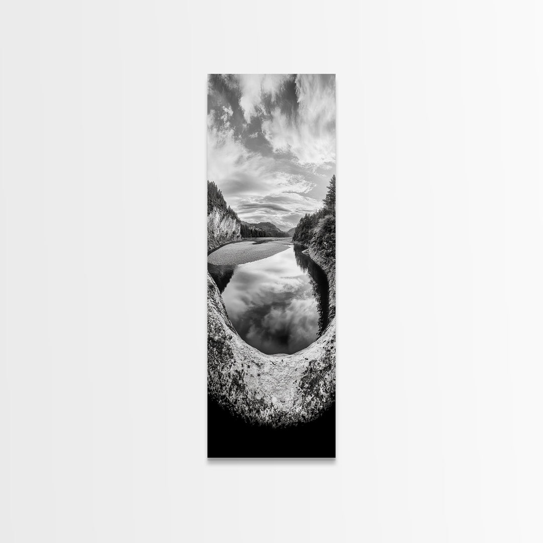 Black and White River, Forest Nature Scene, Reflection Wall Art, Framed Canvas Print, Neutral Landscape, Minimalist Bedroom Decor