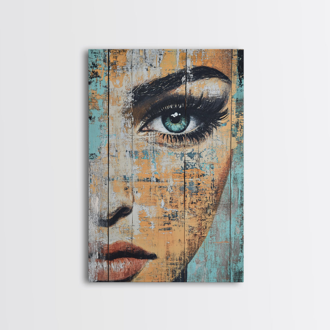 Blue Eye Portrait Canvas Print Realistic Face Painting Modern Wall Art Feminine Home Decor Urban Street Style Artwork Unique Gift