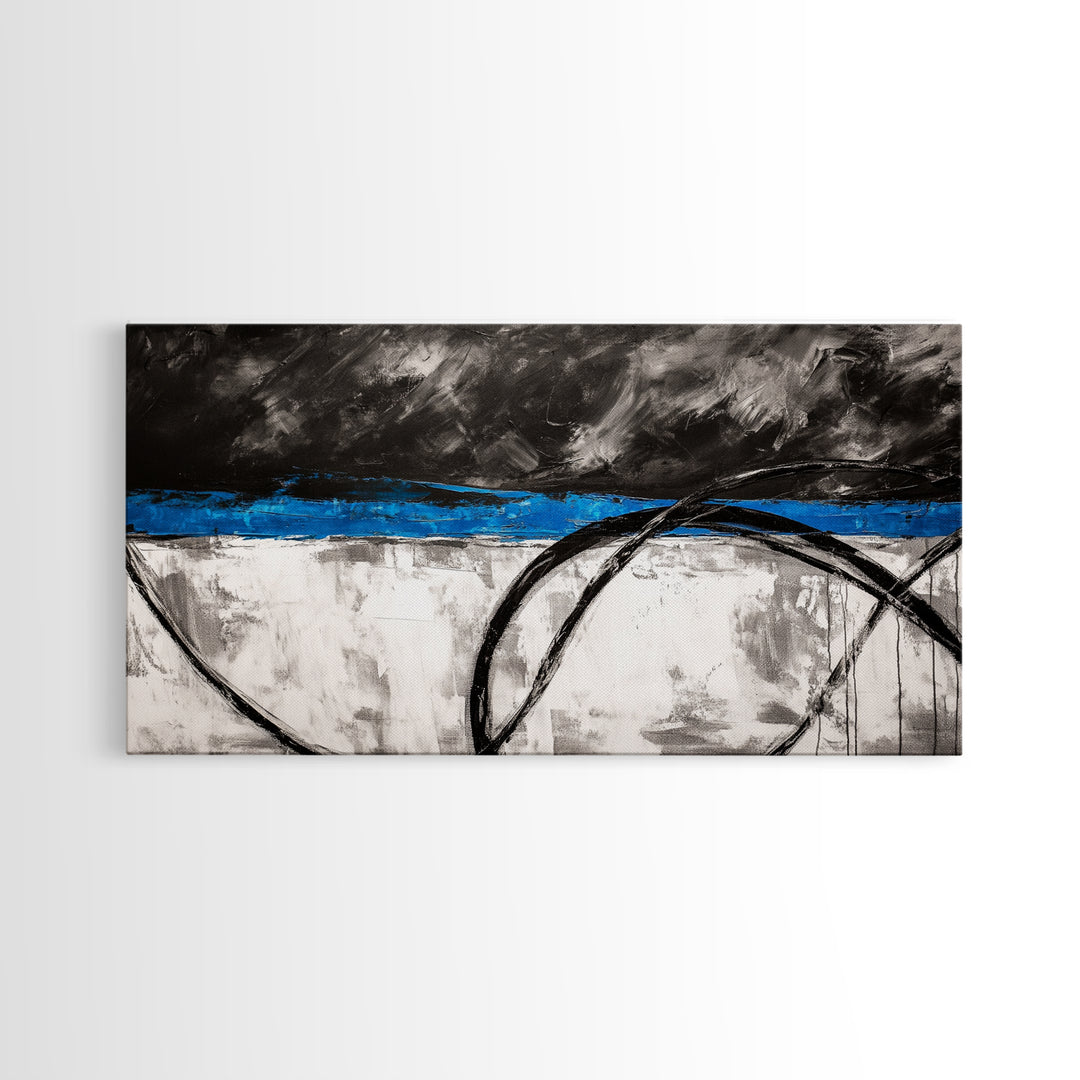 Blue Horizon, Abstract Lines, Framed Canvas Print, Minimalist Painting, Office Wall Art, Geometric Decor, Black and White Aesthetic