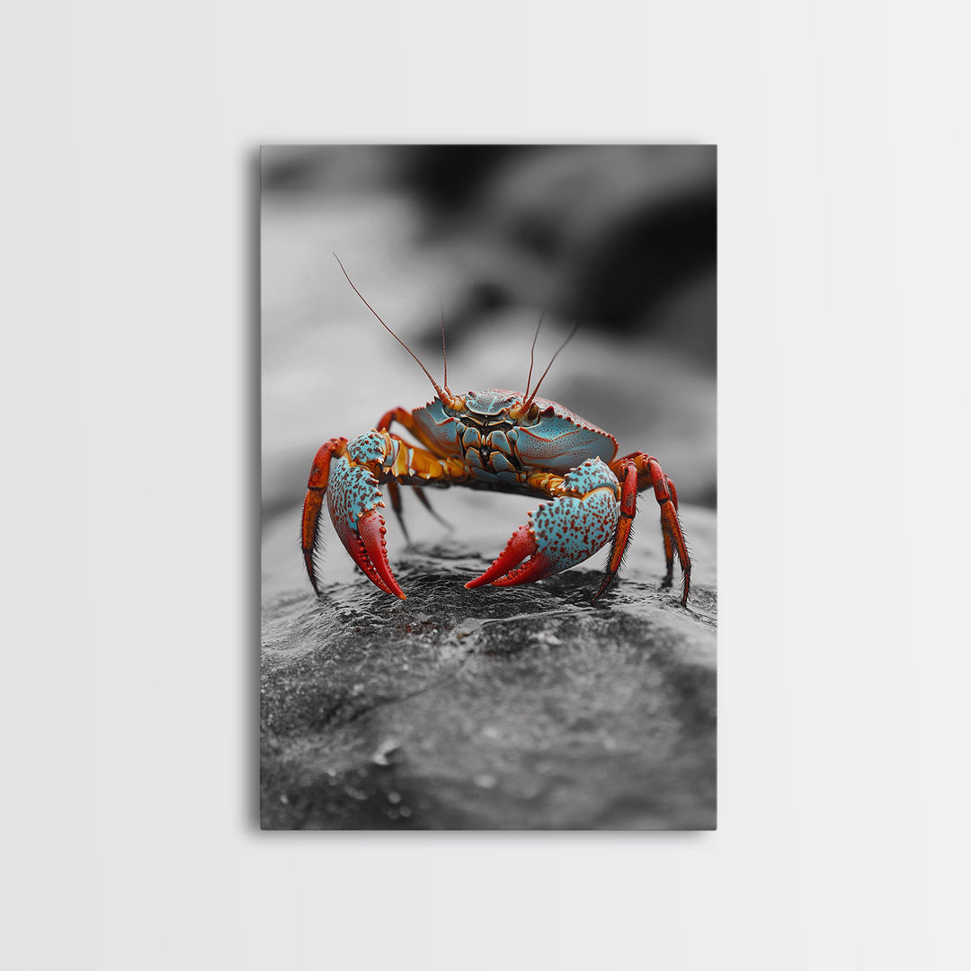 Blue Crab, Vibrant Shell, Coastal Creature Art, Framed Canvas Print, Bathroom Wall Art, Nautical Theme Decor, Ocean Wildlife Art
