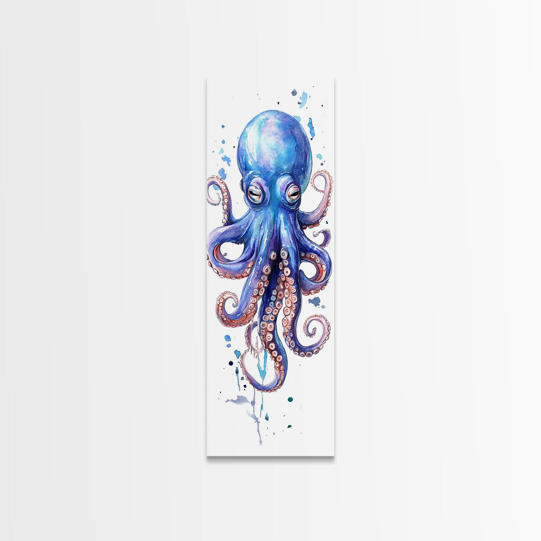 Blue Octopus Art Framed Canvas Print Vibrant Marine Life Decor Whimsical Coastal Nautical Artwork Living Room Statement Piece