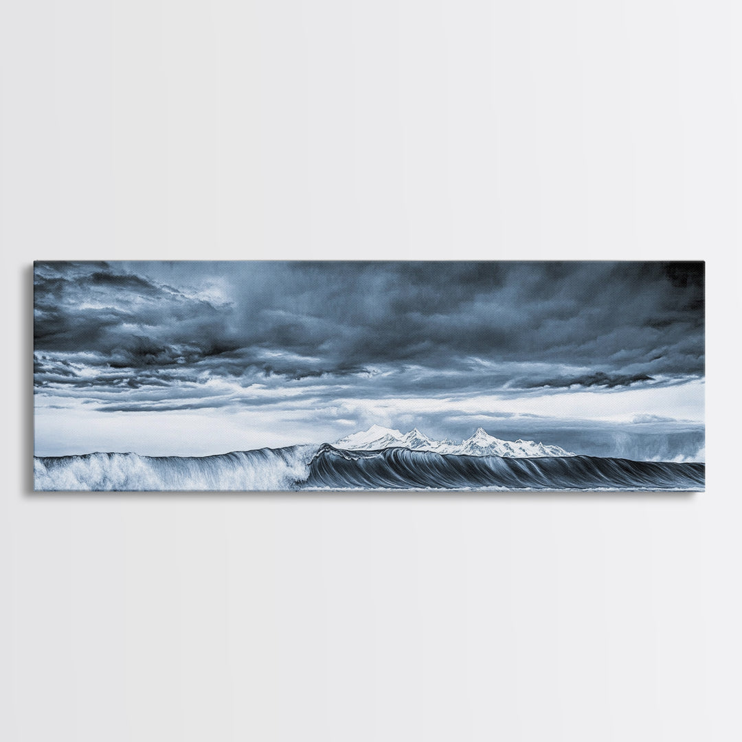 Blue Ocean, Stormy Waves, Mountain Seascape, Canvas Print, Coastal Wall Art, Nautical Home Decor, Living Room Art, Large Modern Print
