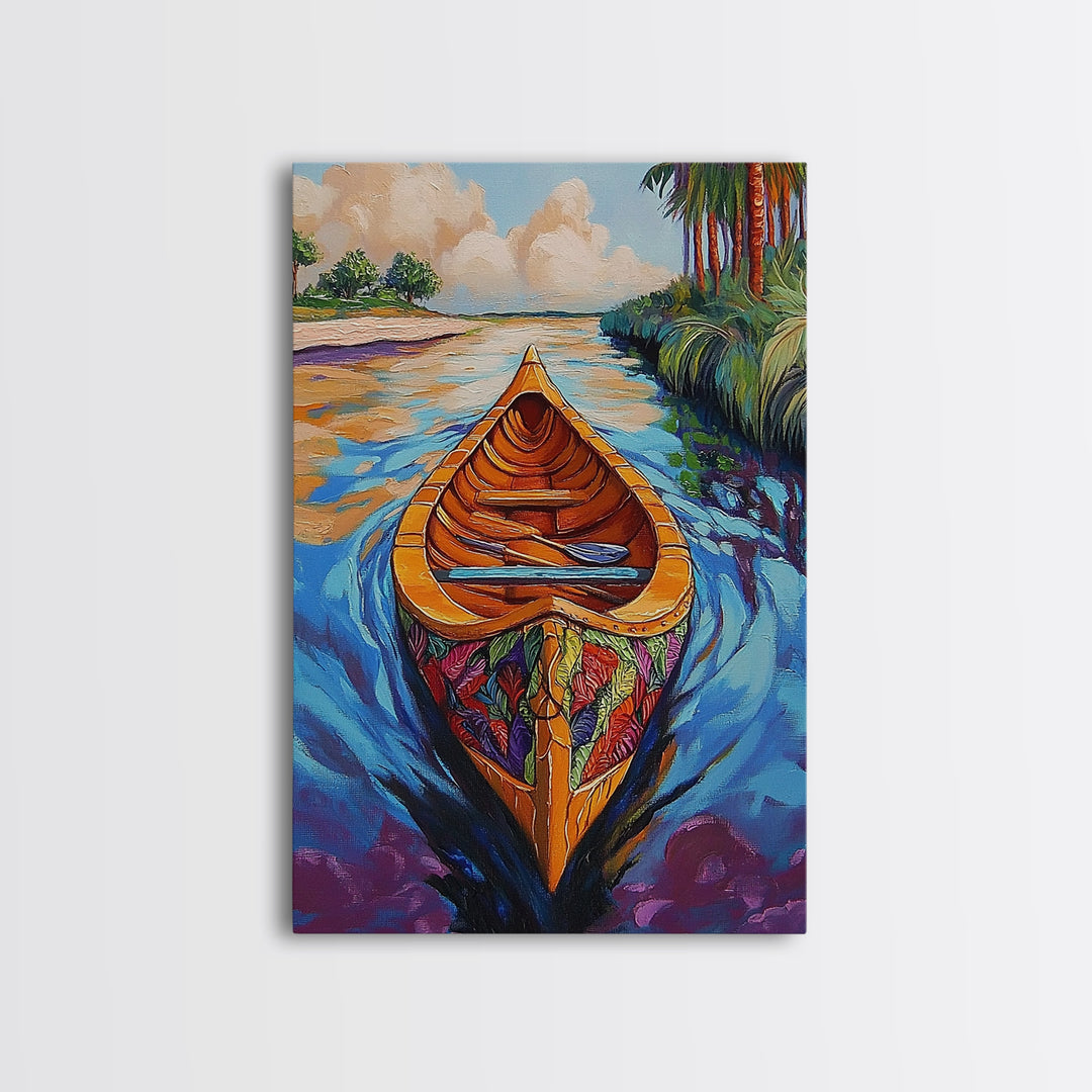 Boat Jungle, Paddle, Colorful Canvas Print, Adventure Nursery Wall Art, Tropical Nature Decor, Bright Travel Inspired Painting