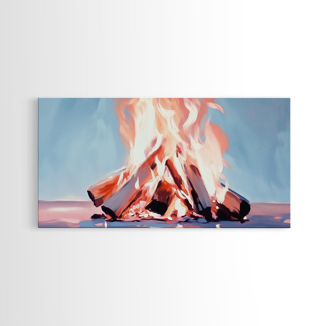 Bonfire Moment, Autumn Night Scene, Outdoor Living Art, Canvas Print, Warm Cozy Decor, Minimalist Fire Painting, Boho Aesthetic