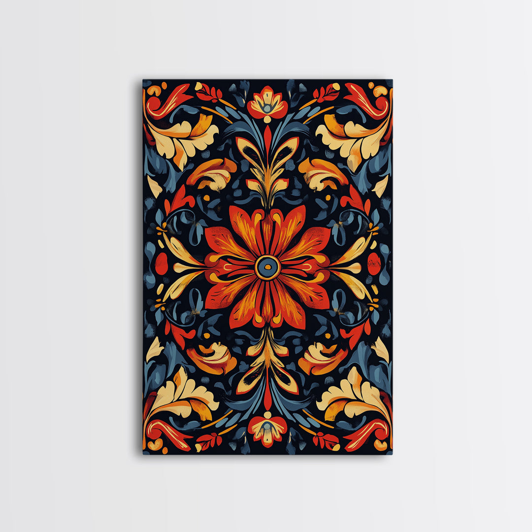 Botanical Floral Tile Pattern Framed Canvas Print, Southwestern Decor, Modern Farmhouse, Pueblo Style Art, Mexicano Chicano Art