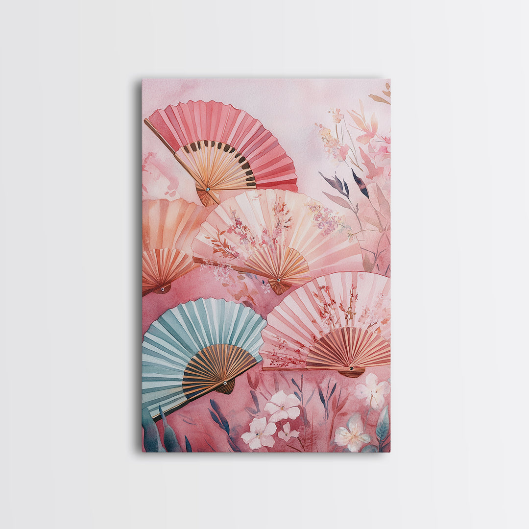Botanical Prints Framed Canvas Print Featuring Colorful Fans Wall Art Wildflower Painting Cottagecore Aesthetic Bedroom Art Decor