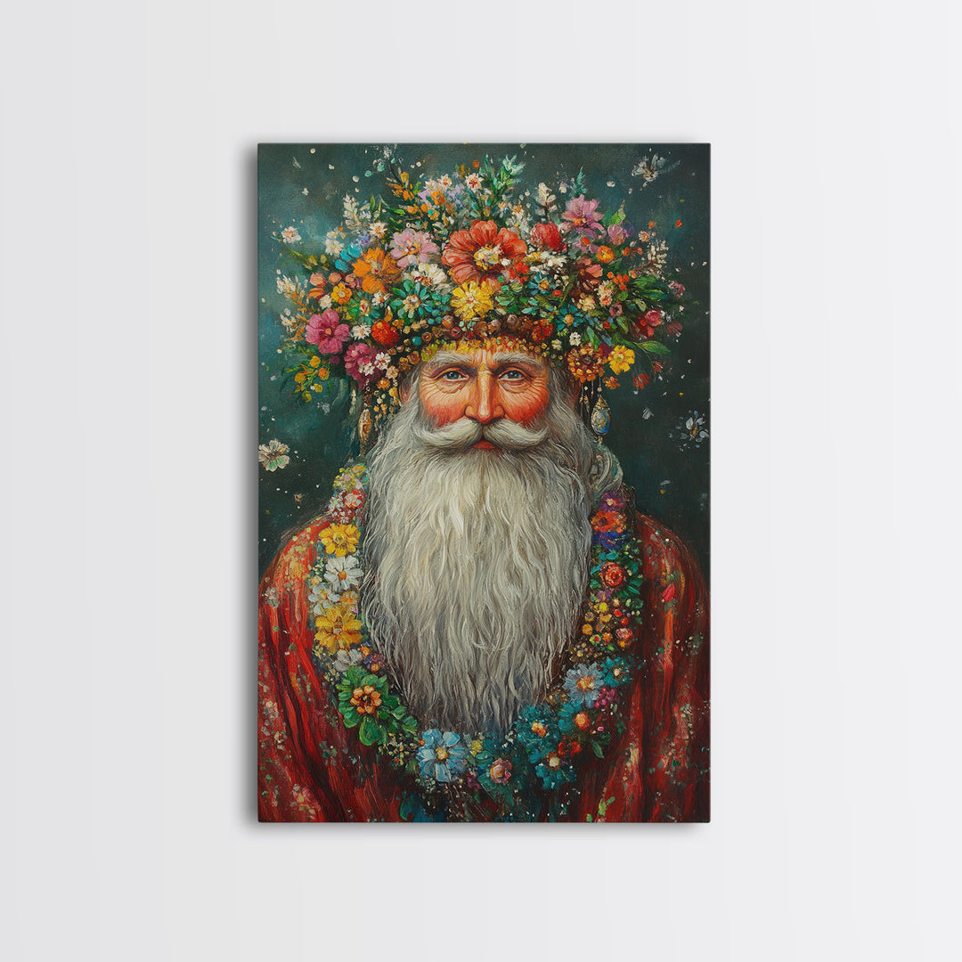 Botanical Prints Framed Canvas Print with Santa Claus-Inspired Floral Arrangement, Rustic Christmas Artwork and Vintage Holiday Decor