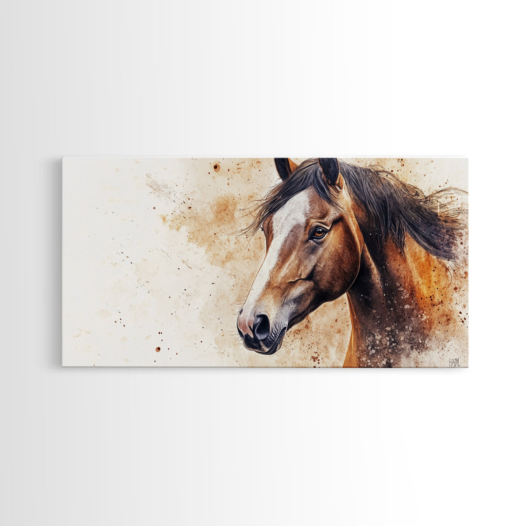 Brown Horse Portrait Canvas Print Rustic Animal Wall Art Vintage Farmhouse Decor Gift Idea Living Room Artwork Framed Wall Art