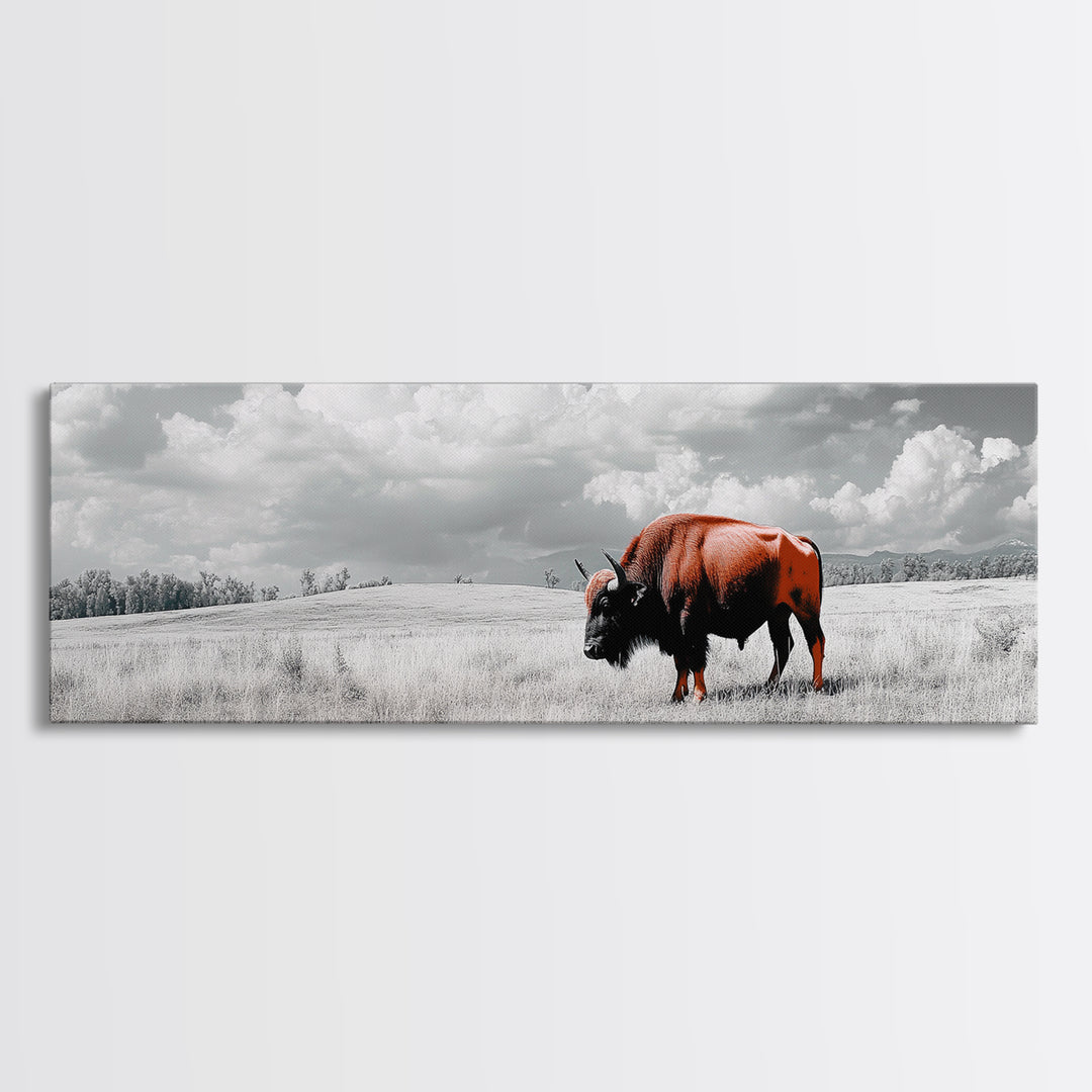 Buffalo, vintage western art, southwest wall art, rustic decor, farmhouse art, cowboy art, framed canvas print, extra wide art