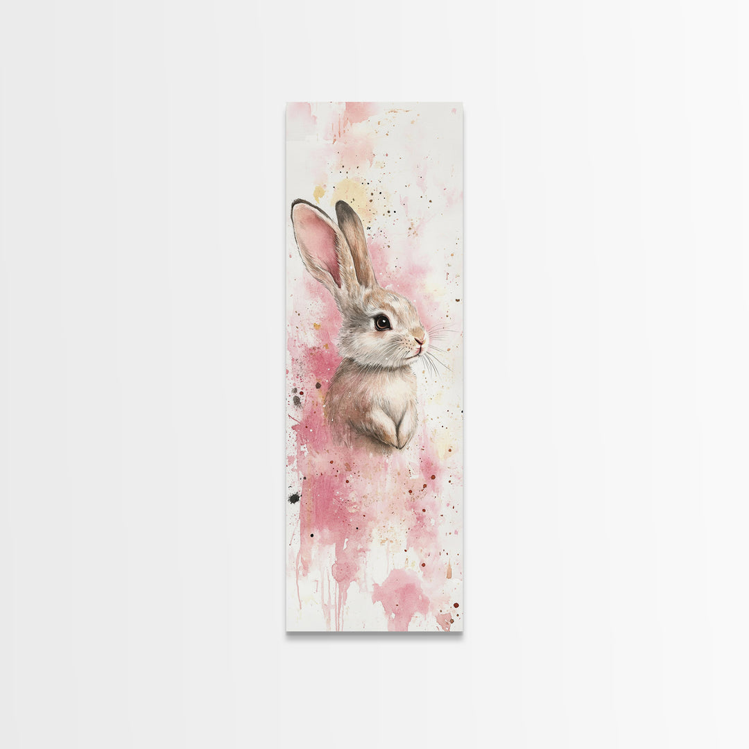 Bunny Watercolor Painting Framed Canvas Print, Cottagecore Rustic Decor, Whimsical Living Room Art, Gift Idea, Light Pink Wall Art
