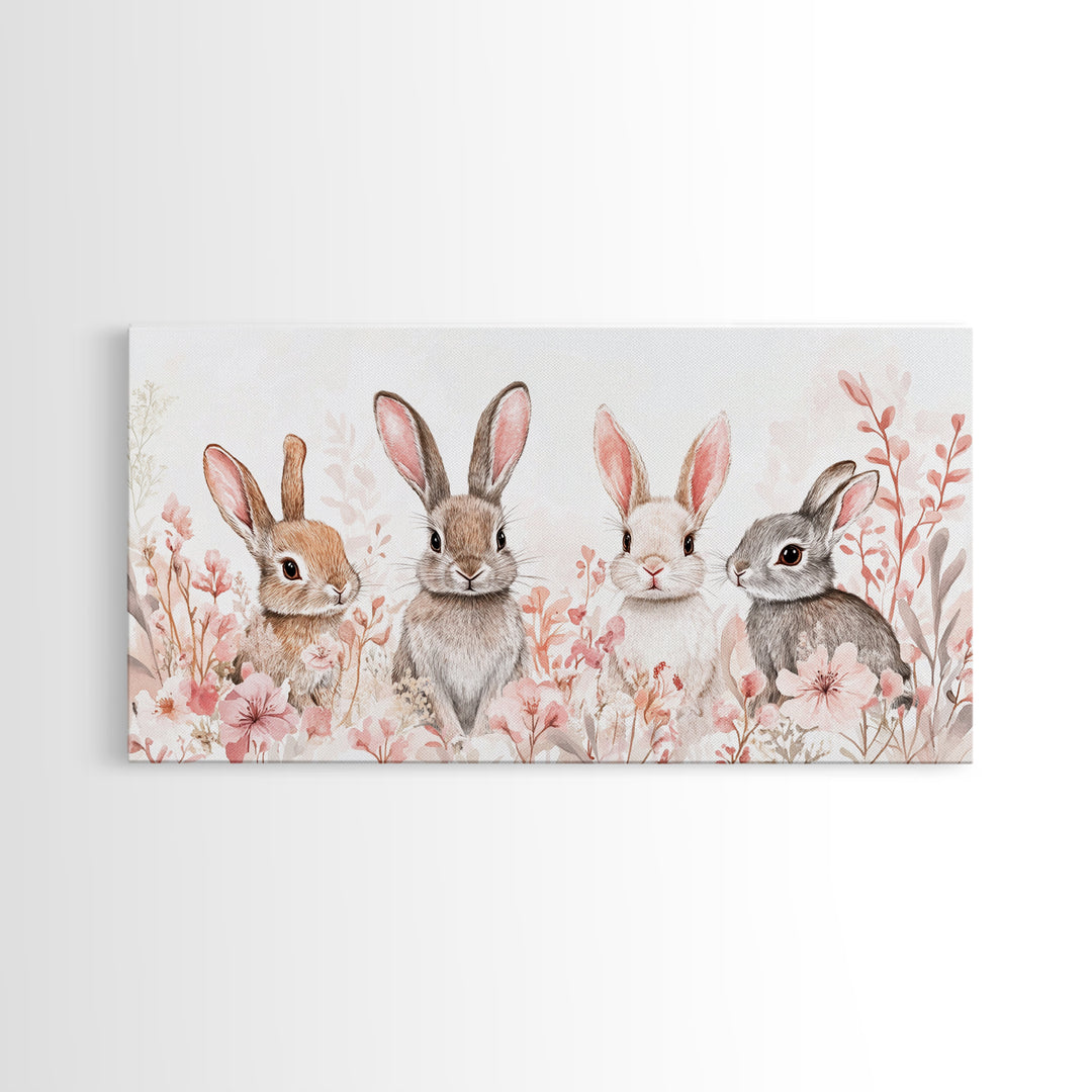 Bunny Art Canvas Print Pastel Wall Art Whimsical Easter Decor Animal Lovers Gift Idea Cottagecore Living Room Art Soft Aesthetic