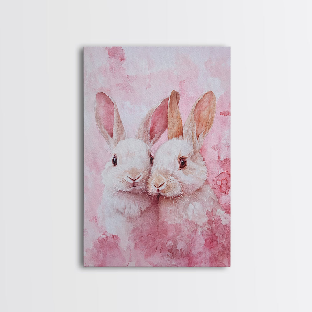 Bunny Couple Art Canvas Print Whimsical Wall Art Cottagecore Animal Art Rustic Home Decor Light Pink Aesthetic Original Artwork