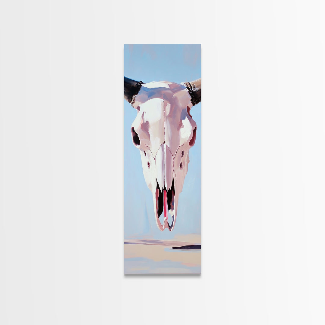 Bull Skull, Skull Art, Rustic Wall Art, Wabi Sabi Art, Southwest Wall Art, Long Narrow Wall Art, Canvas Print, Farmhouse Art, Extra Wide Art