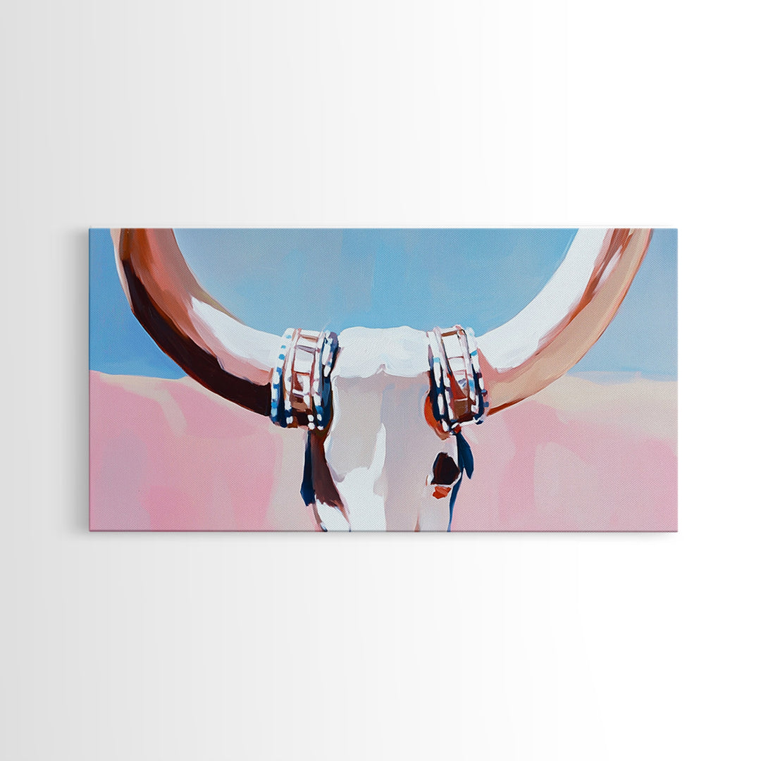 Bull Skull, Western Rustic, Desert Vibes, Framed Canvas Print, Boho Wall Art, Cowboy Aesthetic, Southwest Home Decor, Living Room Accent