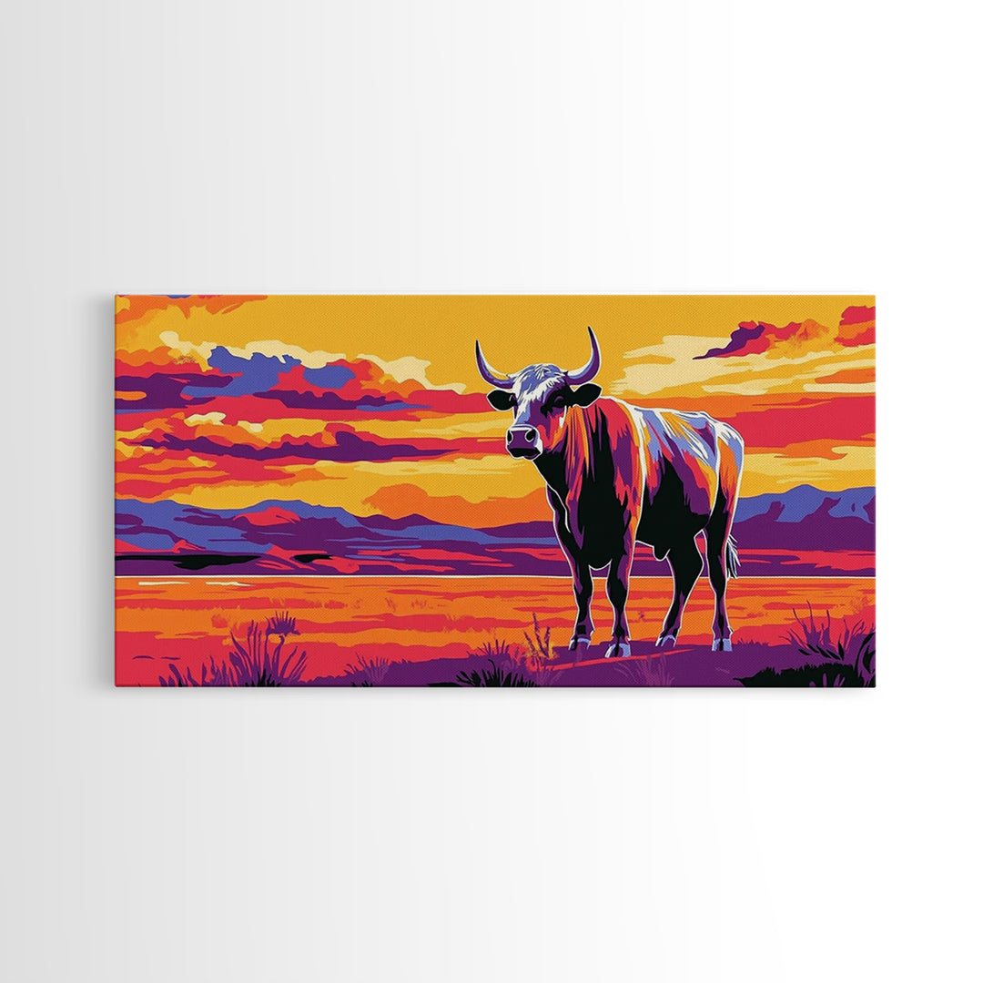 Bull Wall Decor, Animal Wall Art, Western Wall Art, Nature Wall Decor, Panoramic Wall Decor, Canvas Print, Wall Art, Framed Canvas Art