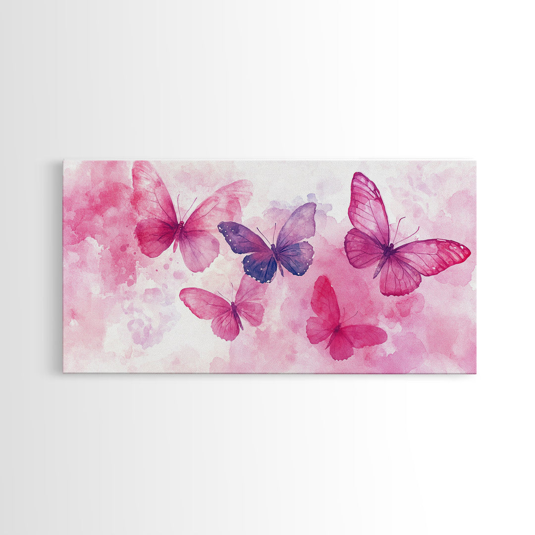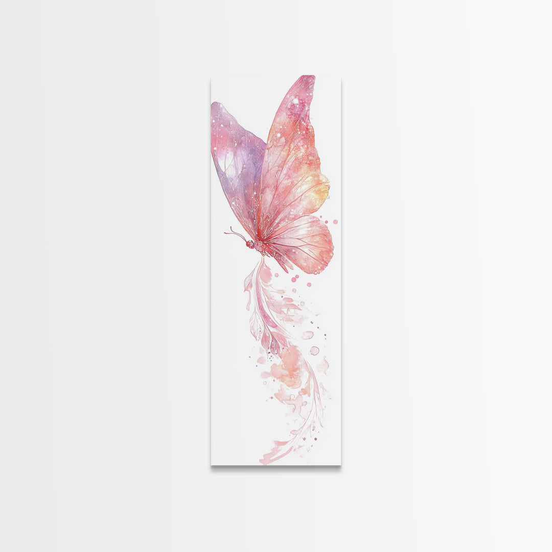 Butterfly Watercolor Canvas Print Whimsical Pink Wall Art Light Cottagecore Bedroom Decor Feminine Nature Above Couch Vertical Art