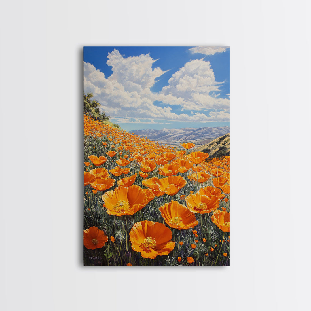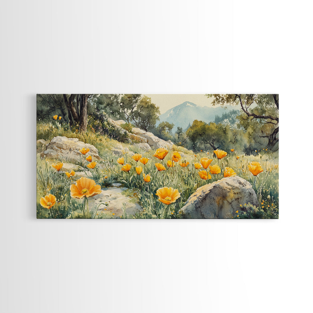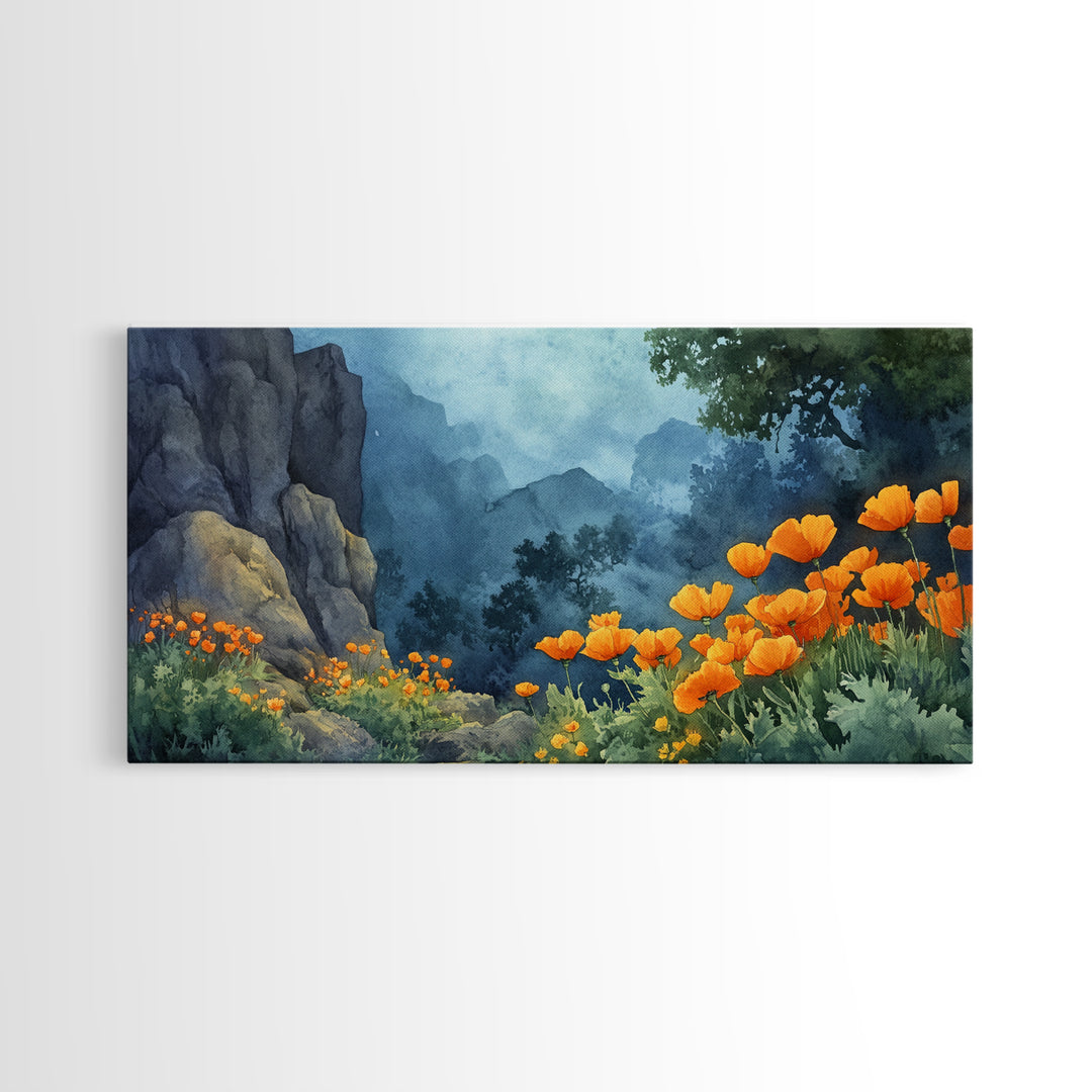 California Poppy Art Landscape Framed Canvas Print Wildflower Wall Art Rustic Decor Above Sofa Living Room Art Gift Idea