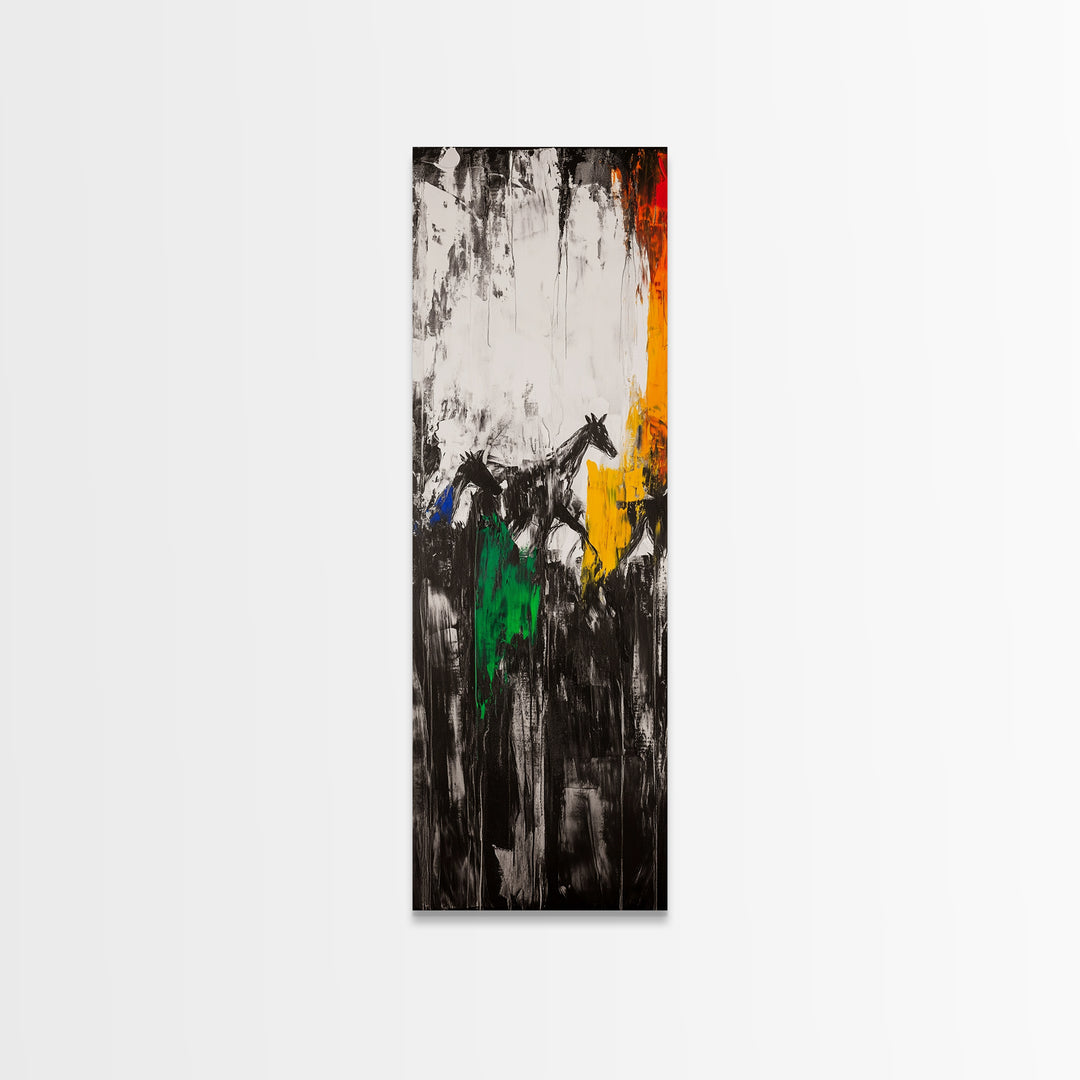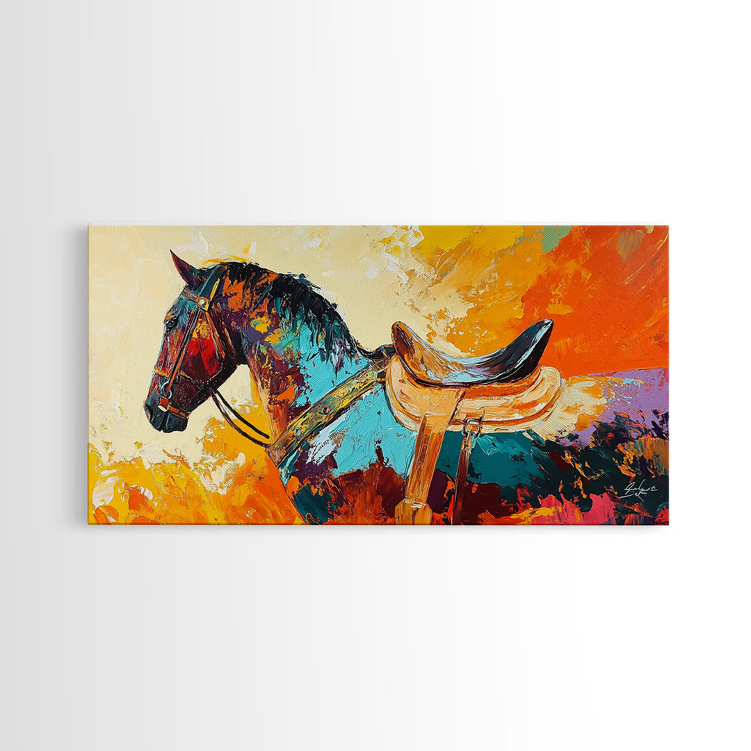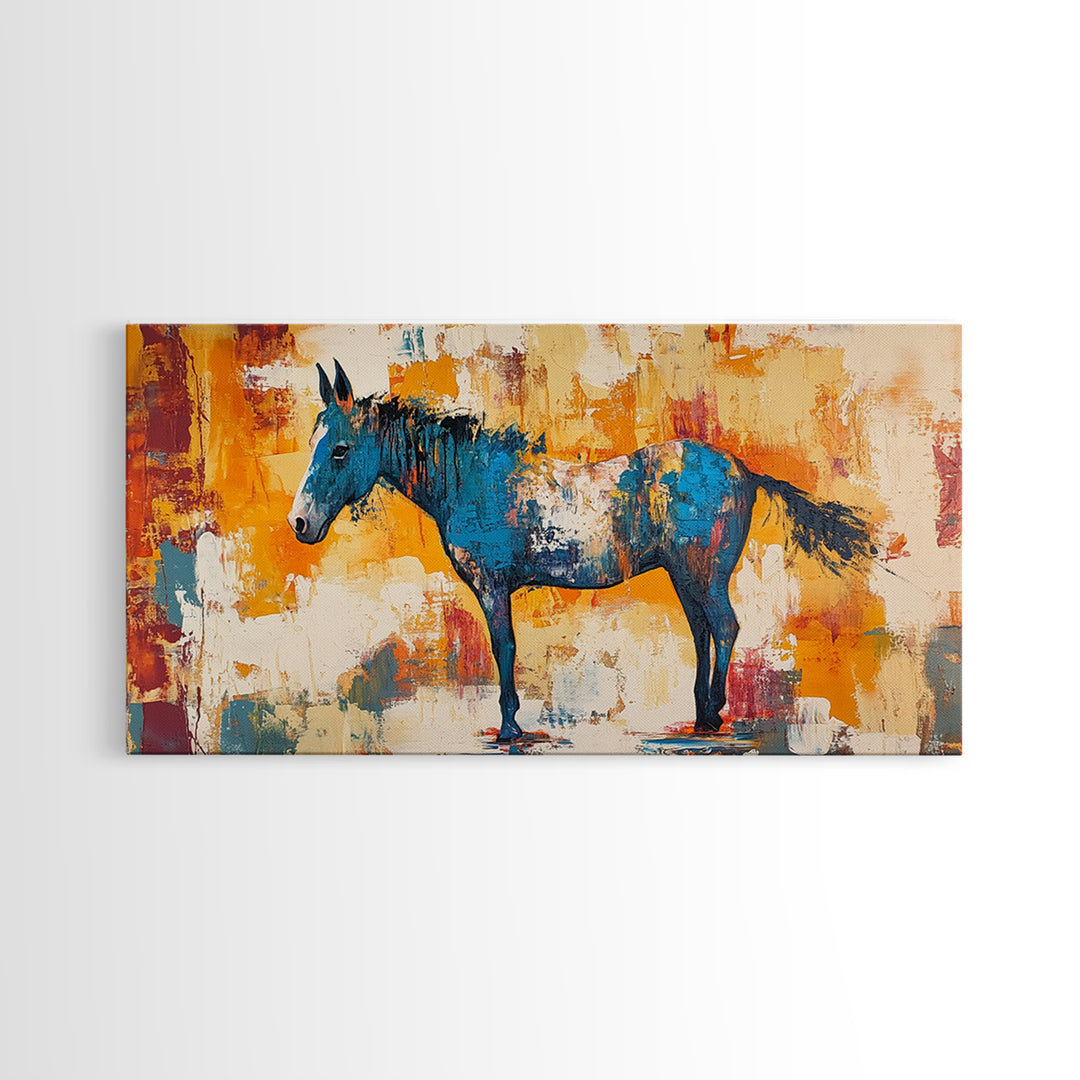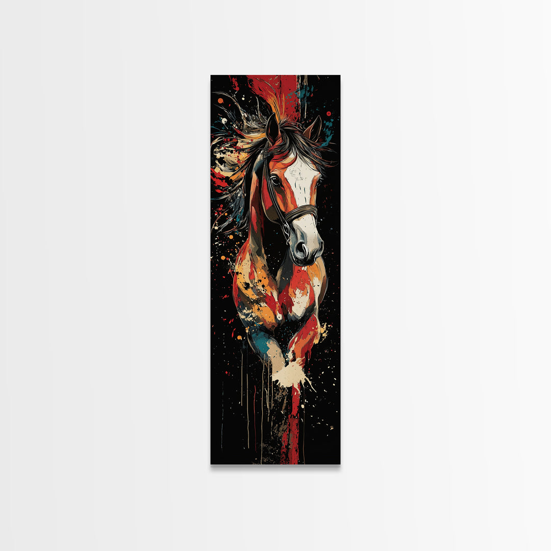 Abstract Horse Painting Framed Canvas Print Colorful Chicano Art Bold Moody Southwest Long Narrow Wall Art Bedroom or Living Room