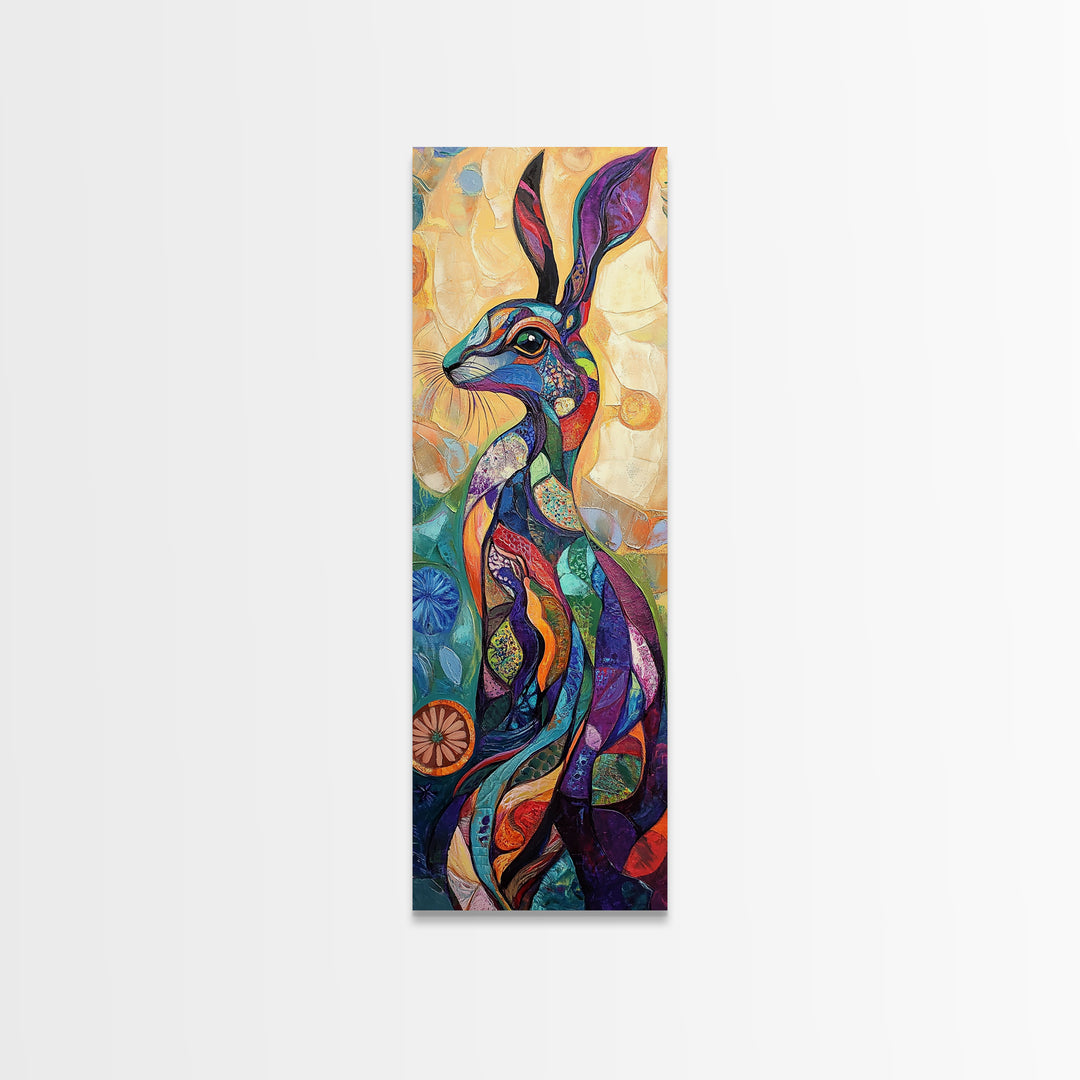 Abstract Hare, Colorful Animal Art, Whimsical Art, Boho Wall Art, Cottagecore Decor, Christmas, Framed Canvas Print
