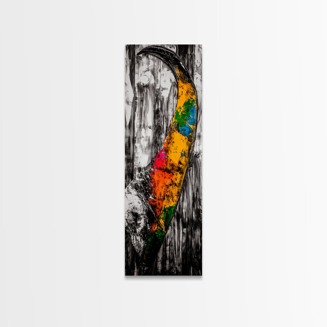 Abstract Horn Art, Rustic Black and White Wood Texture, Colorful Modern Painting, Western Wall Art, Unique Home Decor, Canvas Print