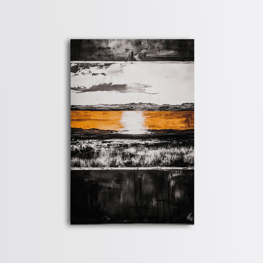 Abstract Horizon, Golden Light, Modern Landscape, Framed Canvas Print, Minimalist Wall Art, Office Decor, Contemporary Sunset, Fall Vibes
