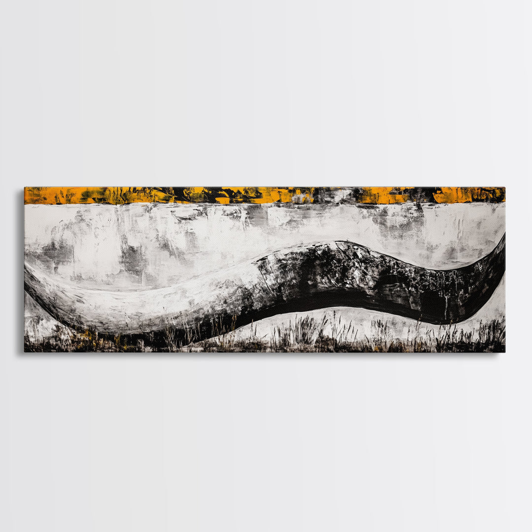 Abstract Horizon, Black and White, Color Splash, Canvas Print, Modern Minimalist Art, Large Wall Decor, Contemporary Painting, Office Art