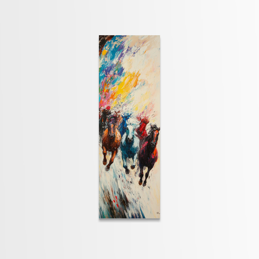 Abstract Horse Racing Canvas Print Horse Wall Art Vintage Horse Art Panoramic Art Bold Colors Art Rustic Decor Gift Idea