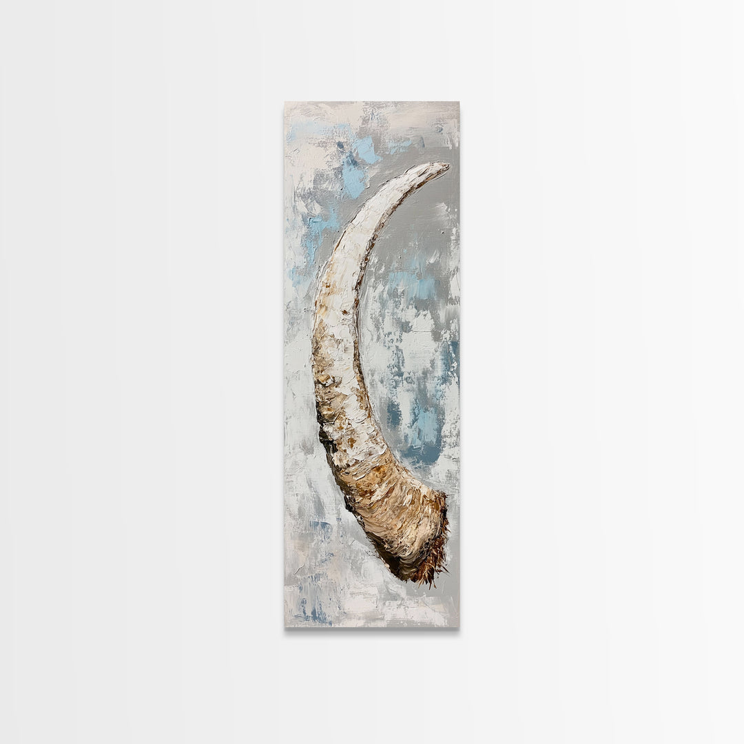Abstract Horn Art Rustic Wall Decor Framed Canvas Print | Wabi Sabi Art | Minimalist Art | Neutral Home Decor | Textured Painting